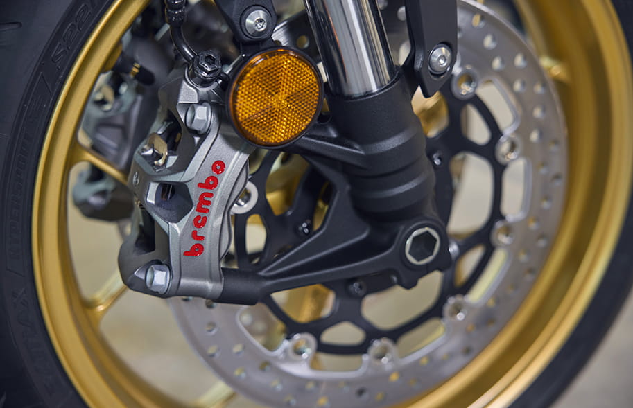 Gold wheels and forks – sharp contrast, pure attitude.