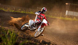 The CRF450R brings you rock-solid reliability, with its ability to punch out of the gate first and build blistering lap times. A new front brake caliper also shaves more vital grams. Revised oil and spring/damping settings for the 49mm Showa Up Side Down fork enhance reaction, complemented by a ‘Super Finish’ process for the rear shock’s damper, plus revised Pro-Link ratio.