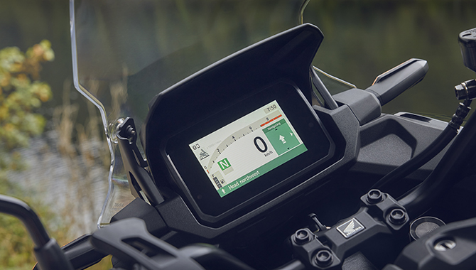 Incudes odometer, trip meter, gear position, fuel efficiency and consumption gauges, (optional) heated grip temperature plus 3-stage S mode.