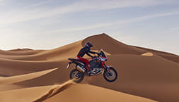 Complete with 6-axis IMU control, four default riding modes, two custom options plus 7-level HSTC, 3-level Wheelie Control and Cornering ABS, the electronic package is top draw. Our unique 6-speed DCT is an option, too. Add a full colour TFT touchscreen, with smartphone connectivity and, whichever Africa Twin you choose, you are ready. For anything.