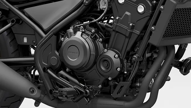 The Rebel 500 is advanced in both technology and safety. Some of the safety systems include Tank Mounted Airbag, ABS, Honda Ignition Security System, Hill Start Assist,etc In terms of Technology, the Rebel 500 boasts of a full color TFT display, an LCD Display System, Riding Mode Select and a Smart Key system to name a few.