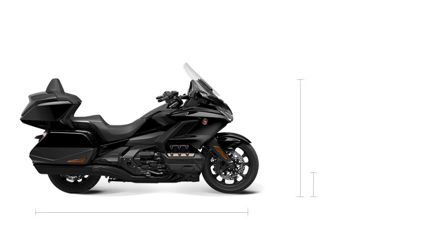 Stripping away the Gold Wing’s sleek bodywork reveals a fully honed chassis; a hugely strong, die-cast aluminium beam frame provides rock-solid stability, with steering precision and control from double wishbone front suspension. The single-sided rear Pro-Arm operates through Pro-Link, with electronically adjustable spring preload, and front and rear damping adjusts relative to riding mode selected. Dual Combined Braking System (D-CBS) distributes braking force evenly and with ABS control for confident, efficient stopping power. Hill Start Assist (HSA) makes getaways on an incline easy.