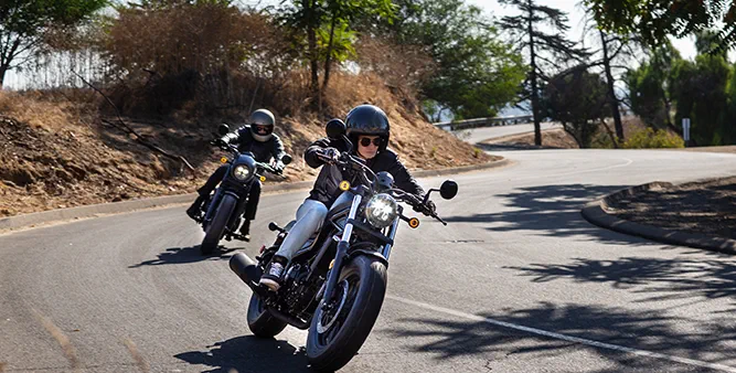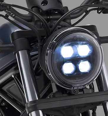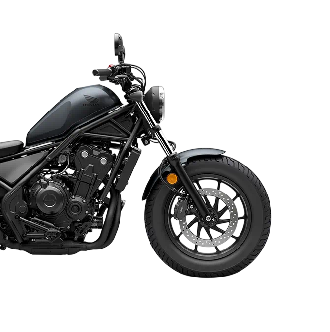 The rigid, low-slung tubular steel frame is central to Rebel style and hugely complemented by 16-inch diameter cast aluminium wheels with fat, 130/9-16 and 150/80-16 front and rear tyres. For a stripped-down look the pillion footpegs and rear seat pad quickly unbolt. 41mm telescopic front forks are matched to spring preload- adjustable, nitrogen-charged shock absorbers, for a compliant and supple ride; both front and rear discs are controlled by two-channel ABS, for confident braking in all conditions.