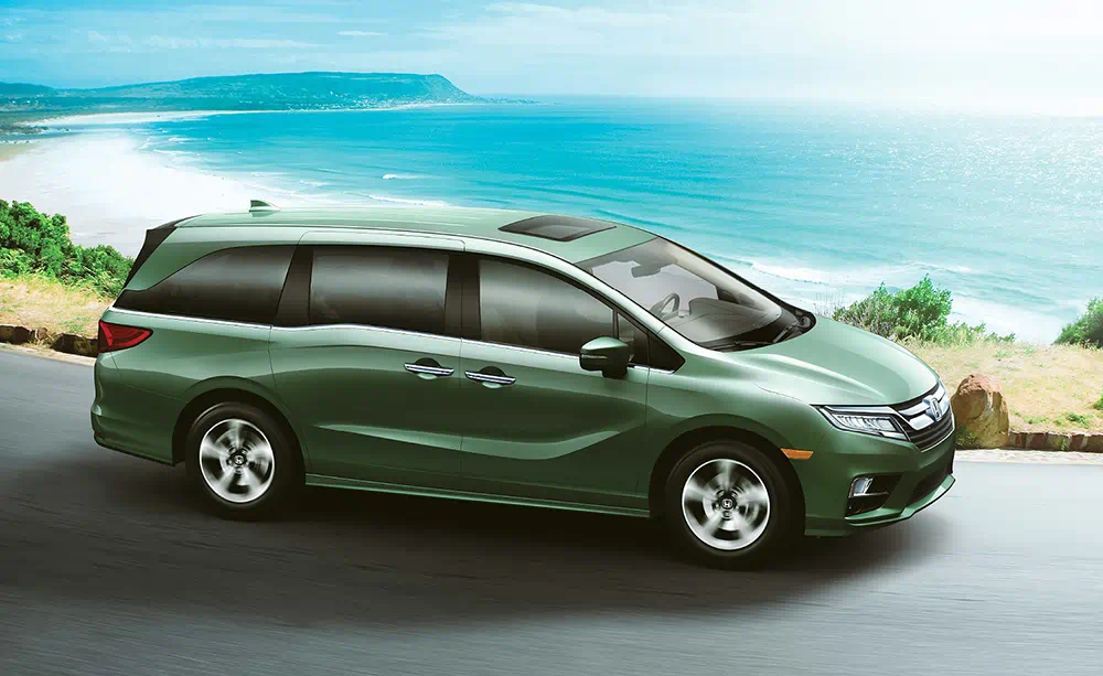 A distinct feature of the Honda Odyssey in the EX-L and Touring grade is the Height Adjustable Power Tailgate feature, which makes it easy to customize for drivers of all heights and protects the tailgate from damage in areas with lower ceiling heights. In addition, the Touring Grade has the Hands-Free Assist feature, which allows you to open and close the tailgate with a simple kick action under the rear bumper when your hands are full.