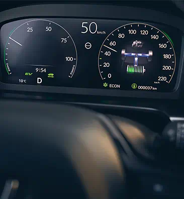 La technologie de traction intelligente multimodes (i-MMD) offre une expérience de conduite réactive, fluide et efficace, délivrant en toute transparence une puissance optimale en basculant automatiquement entre trois modes de conduite : Mode électrique, mode hybride et mode thermique.