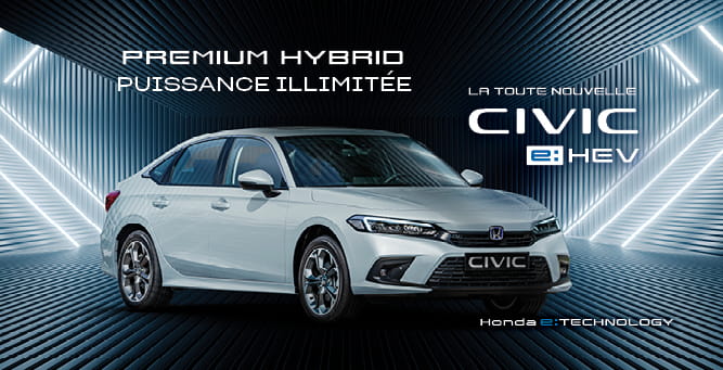 La toute nouvelle Civic e:HEV 2023, une première dans la région, incarne la technologie hybride à recharge automatique la plus avancée, avec réactivité et efficacité intégrées. La Civic peut fonctionner exclusivement sur une batterie électrique douce et silencieuse, rendant votre conduite aussi exaltante qu'efficace. La Civic, qui en est à sa 11e génération, bénéficie de l'héritage de la technologie hybride Honda et le groupe motopropulseur e:HEV qui en résulte offre un équilibre parfait entre performances et économie d’énergie à chaque fois que vous prenez le volant. De plus, la dynamique sportive de la Civic est enveloppée dans une carrosserie époustouflante qui attire l'attention et la technologie e:HEV offre une expérience hybride complète à chaque conduite.