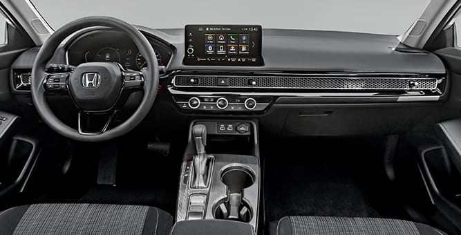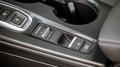 la Civic e:HEV est équipée d'un frein de stationnement électrique avec maintien automatique du freinage. Au lieu du traditionnel levier manuel ou de la pédale de frein de stationnement, le propriétaire peut simplement soulever le commutateur du frein de stationnement électrique pour serrer le frein de stationnement du véhicule et pousser le commutateur vers le bas pour desserrer le frein de stationnement