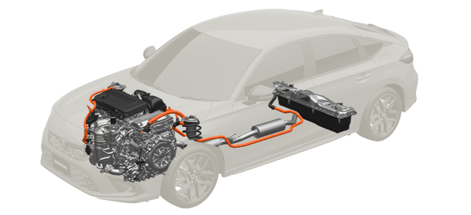 La performance hybride de Honda est le résultat de la combinaison intelligente d'un puissant et efficace moteur à essence de 2,0 litres, de deux moteurs électriques et d'une batterie lithium-ion. L'avantage de l'i-MMD est qu'en plus d'utiliser le moteur à essence pour produire de l'électricité, il peut récupérer l'énergie gaspillée pour recharger la batterie, ce qui signifie que vous n'aurez jamais à brancher votre Civic e:HEV sur le réseau électrique. C'est l'hybride que vous pouvez sentir, avec une conduite que vous apprécierez tous les jours.